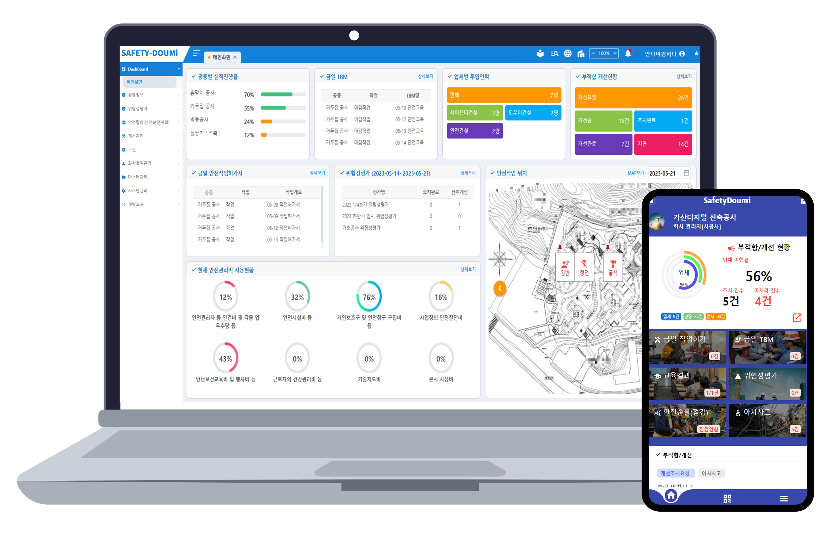 실시간 정보 공유 및 전파, 작업위치 등 공장 내 위험작업 현황 전사 모니터링 가능