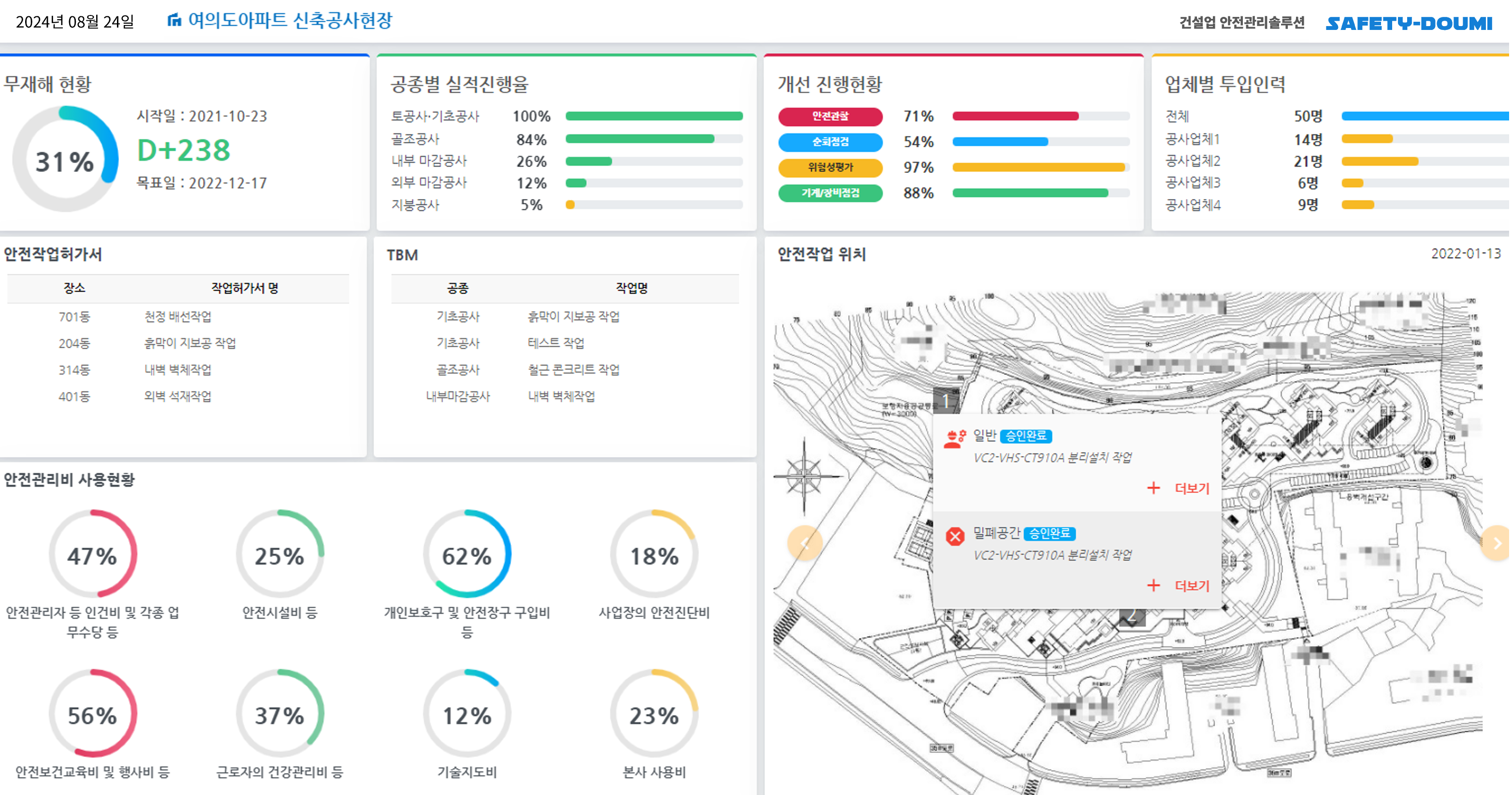 안전보건관리비 예산대비 실적 관리